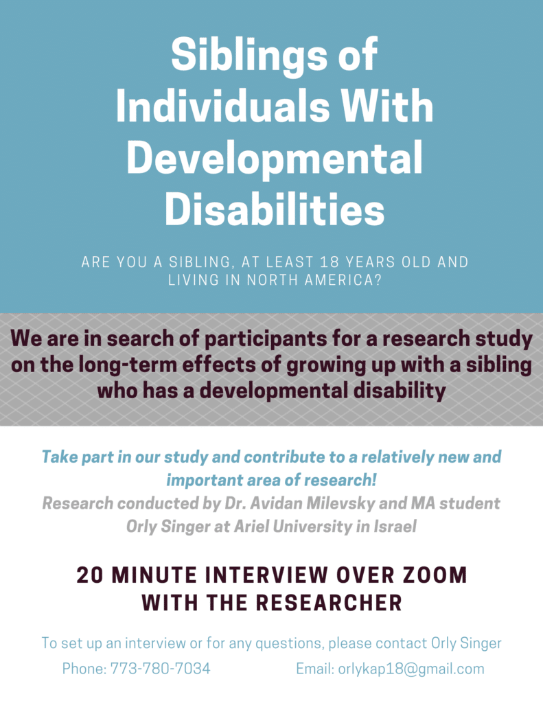 We are in search of participants for a research study on the long-term effects of growing up with a sibling who has a developmental disability.